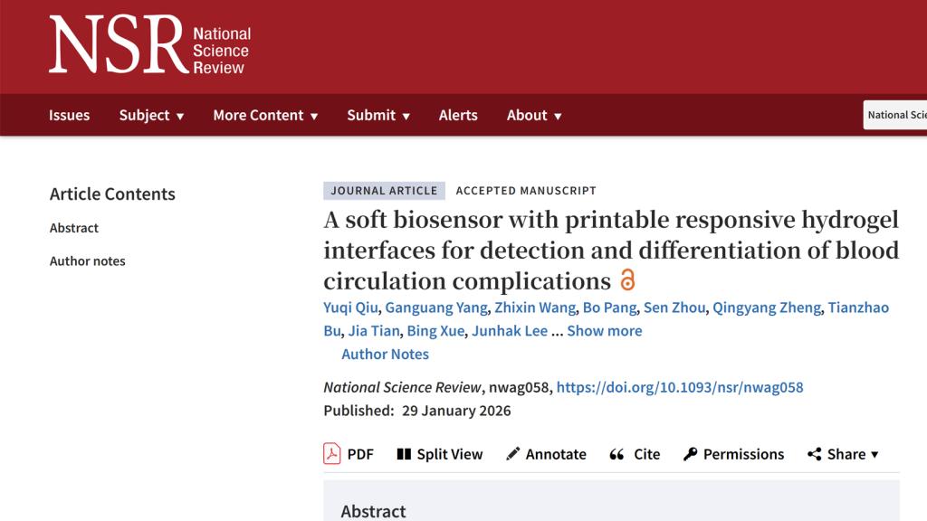 - 公司吴豪教授、尹周平院士团队在《国家科学评论》发表血运监测领域研究成果2026/02/03