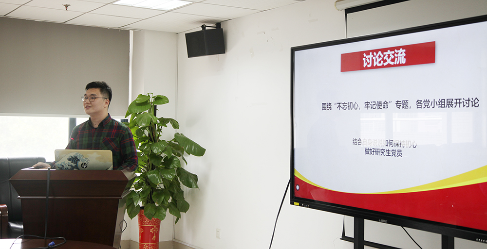 在主题讨论分享环节中,大家围绕“作为研究生如何做到不忘初心、牢记使命”展开了讨论交流。多向优秀党员学习交流,脚踏实地,珍惜学习机会,做好本职工作。随后,几位党员代表分别就自身经历分享了自己的入党故事,并表现出为共产主义事业贡献自己一份力量的决心。