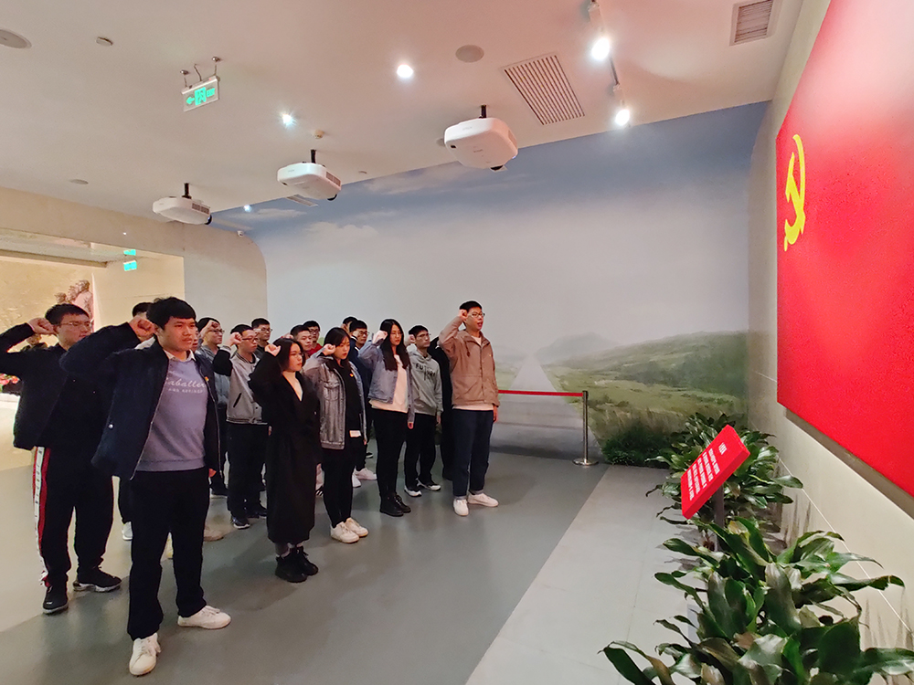 虽然秋雨不断,同学们参观和学习的热情依然高涨,继续前往中国共产党纪律建设历史陈列馆进行参观。中国共产党纪律建设历史陈列馆是由武汉市纪委主持建设的全面展示党的纪律建设光辉历程的专题性展馆。展览分为“创立与探索”“推进与曲折”“恢复与发展”“新时代新征程”4个部分,系统梳理了中国共产党纪律建设的历程,全面、客观、真实反映了中国共产党在不同历史时期的纪律建设理念、战略方针及主要成果。同学们通过观看展览的方式,对党纪及其建设过程有了更加系统的认识。参观完毕后,支部书记带领同学们重温入党誓词,党员同志们在党旗前庄严宣誓,对党忠诚,为共产主义奋斗终身。伴随铿锵有力,掷地有声的誓词,此次特色党日活动正式结束。