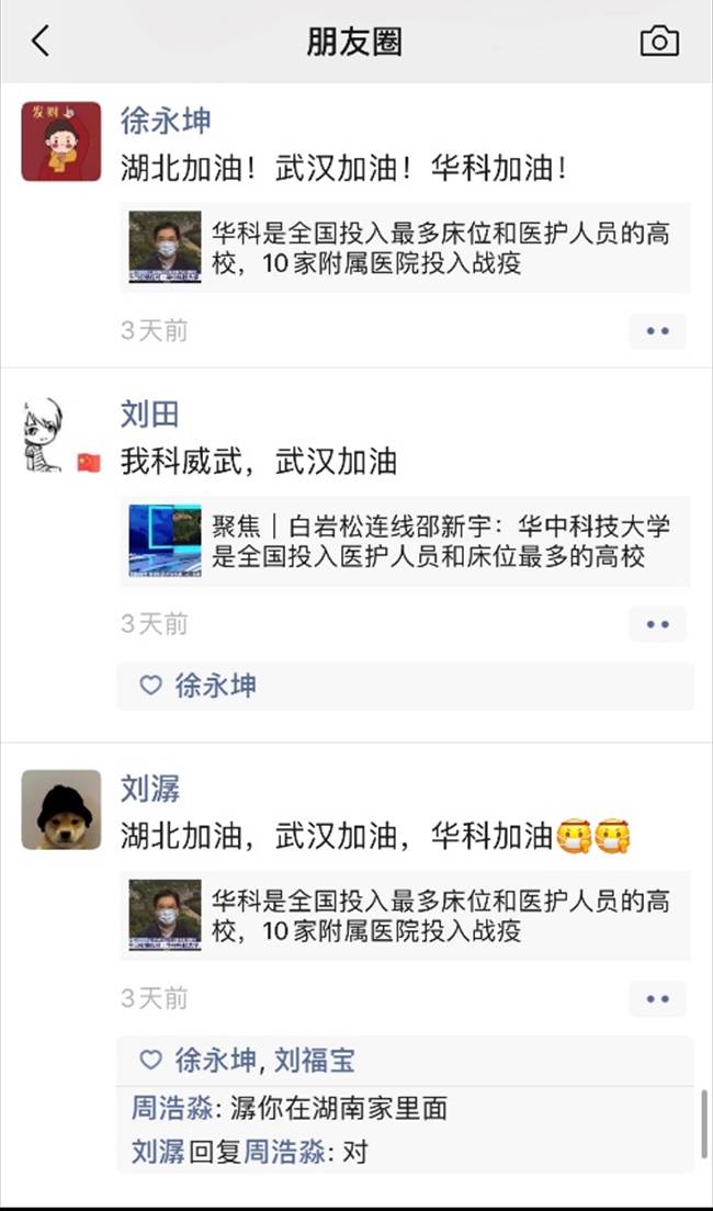 为深入学习贯彻习近平总书记关于疫情防控工作的重要讲话精神和重要指示,积极响应教育部对老员工做“守护者”“修行者”“识途者”的号召,充分发挥研究生党支部战斗堡垒作用与党员先锋模范作用,公司各研究生党支部积极开展有关精神的学习教育活动,采用线下独立思考、线上集中讨论的创新形式召开2月专题党组织生活会,深入学习全国战“疫”精神,挖掘党员全力战“疫”故事,向一线战“疫”人员和困难群众传递力量,助力武汉、祈福中国!