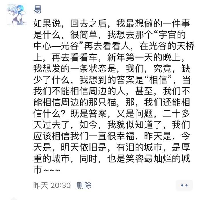 装备博士一党支部杨金荣:“春日迟迟,采蘩祁祁。”这个春天,已经到来。灾劫终将过去,惶恐必然远离,我们期待着春雨泽万物,惊雷驱瘟神。我们彼此相依,同道而行,定能迎来山河安泰,人间无恙。