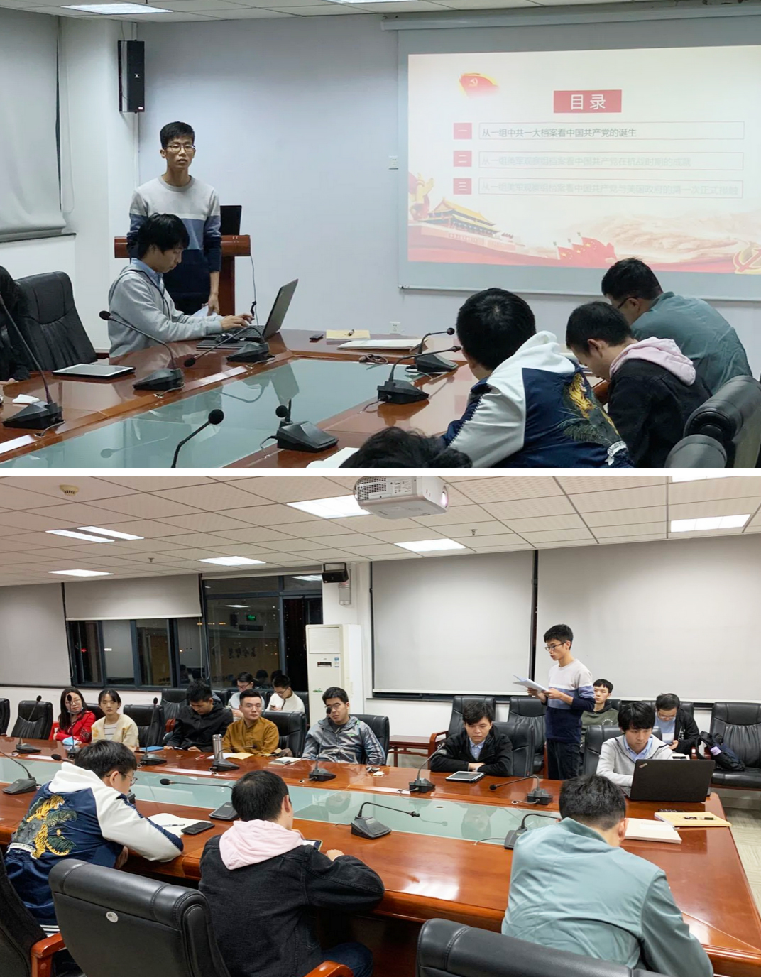 在随后的微党课中,周浩源作为主讲人带领大家重温中国共产党全国代表大会发展历程,对中央档案馆原馆长杨冬权同志“学好党史国史牢记初心使命”的报告进行学习,深入探讨党的成立时间。