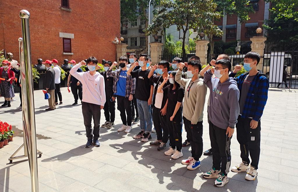 最后,在武汉中共中央机关旧址纪念馆外的党旗前,支部全体党员整齐列队,高举右手,共同重温入党誓词,铮铮誓言,一字一句,神圣而庄严。