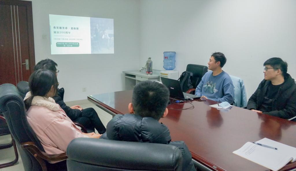 11月28日,是全世界无产阶级革命的伟大导师、马克思主义创始人之一、马克思的亲密战友恩格斯诞辰200周年。为加强“四史”学习,提高党员同志的基本素养,落实三会一课制度,机硕2004党支部第一党小组召开“纪念恩格斯同志诞辰200周年”专题党小组会。本次活动邀请了马克思主义公司思想政治教育方向的姜楠带领大家一起学习,由党小组组长滕钺组织并主持。