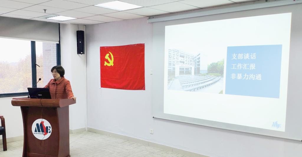 11月26日下午,公司副经理张芬以“从支部谈话详解非暴力沟通”为主题,为机硕1902党支部全体党员、发展对象和部分积极分子讲授党课。