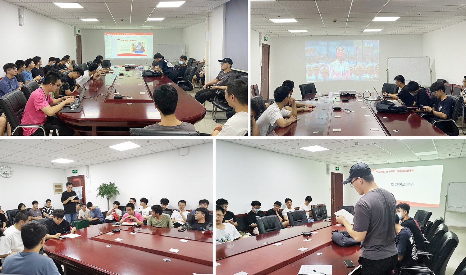 随后,同学们回顾了在庆祝中国共产党成立100周年大会上,共青团员和少先队员代表集体致献词的视频。“请党放心,强国有我”,青少年代表们铿锵有力的青春誓言引发了同学们的热烈讨论。刘浪同学表示,被少年们朝气蓬勃的精气神所震撼,他们激昂的演讲让我们看到过去100年,是我们党披荆斩棘、开拓进取的100年,是风雨兼程,成就辉煌的100年。如今正处于“两个一百年”交际之时,我们深感肩上责任之重,一定努力奋斗科研强国。