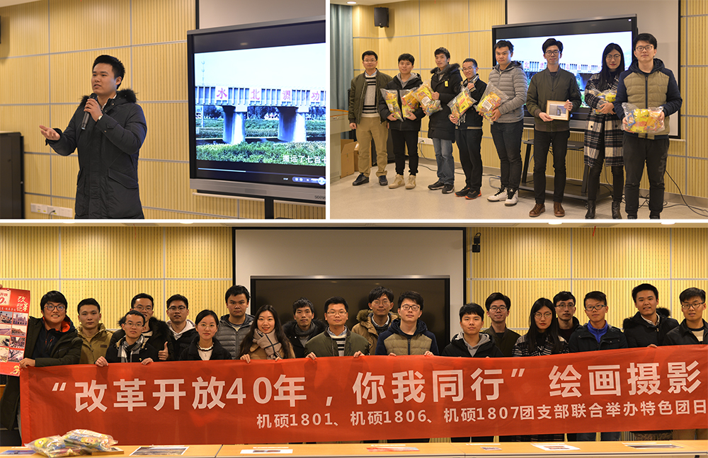 12月9日,公司机硕1801、1806、1807团支部在先进制造大楼东楼A304圆满举办“改革开放40年,你我同行”主题绘画摄影展。本次活动共有160名同学组成56个小组提交相关展示作品。通过投票角逐,绘画与摄影作品共评选出一等奖2项,二等奖4项,三等奖7项。
