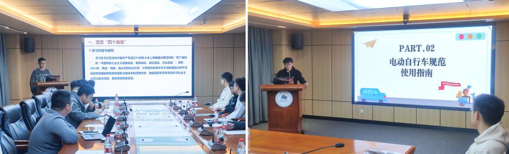 科创实验2301班团支书赵子旋领学了“四个自信”精神内涵和2024年“两会”精神,并围绕“两会”中与科技创新相关的议题展开分享;科创实验2302班团支书罗亦昊领学了雷锋精神和电动车安全教育知识,分享了雷锋同志的生平事迹,并重点提醒了电动车使用的安全注意事项。