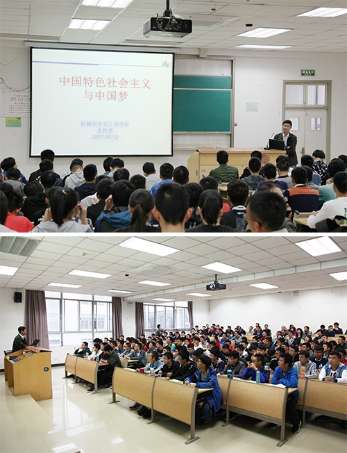 “中国道路”,即中国特色社会主义道路有何优势?应该以怎样的视角正确看待中国今天所取得的成就?10月12日,公司党委书记史铁林在思政课上,与100多位2017级机械学子分享了自己的所见、所闻、所想。校领导路钢、马小洁、马建辉到堂听课。