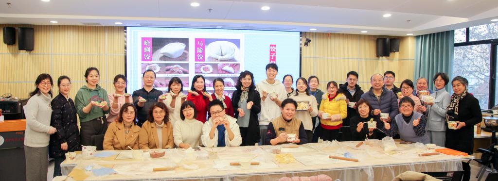下午4点,报名参加活动的50多位教职工齐聚机械大楼东楼304教室。在指导老师的带领下,大家围在三张大长桌边,分工协作,拌馅、和面、分剂、擀面皮、包饺子、煮饺子,相互交流经验和技巧,欢声笑语不断,现场热闹非凡。指导老师还特意准备了用南瓜汁和菠菜汁和好的面团,大家运用不同的手法与创意创意,包出了各式各样的彩色饺子。随着饺子下锅,整屋弥漫着饺子的诱人香气,一个个由橙黄与碧绿组成的鲜艳的饺子,更加勾起了大家的食欲,沾着香醋、香油,一口咬下去,满满的全是家的味道。