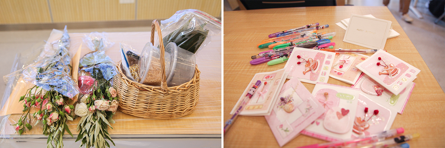 大家一边制作一边交流心得,看看食材放得是否适量,粽叶是否捏紧,棉线缠得是否均匀美观,谁包的粽子最大最美……此外,活动还为大家准备了艾草花束和竹篮包装,并提前向参加活动的教职工征集了节日祝福小卡片,在完成粽子制作后将卡片随机发放,大家可以感受到来自其他同事的节日惊喜和温暖。现场气氛热烈又欢乐,充斥着浓浓的情感和美好的心情。