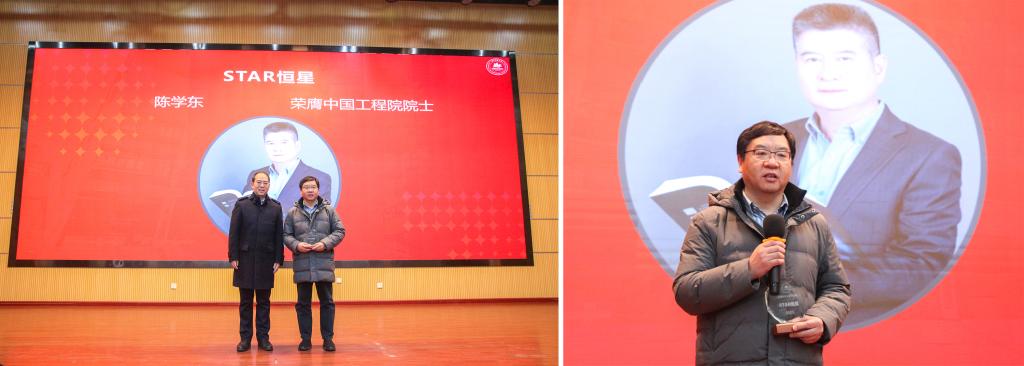 2023年,陈学东教授荣膺中国工程院院士,公司授予“STAR恒星”称号。陈学东院士团队罗欣教授上台代为领奖并做发言。经理尹周平颁授奖杯。
