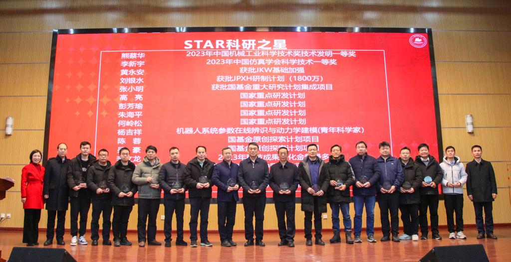 表彰李文龙教授为“STAR行星”;唐小卫教授、韩斌教授、谷洪刚教授为“STAR卫星”;“机器人化智能制造”教师团队丁汉院士、赵欢教授等教师,陈蓉教授为“STAR师德之星”;党委副书记段政,工会主席袁楚明为“STAR文化建设之星”;欧阳俊怡、龚凌轩、李娟为“STAR公共服务之星”。