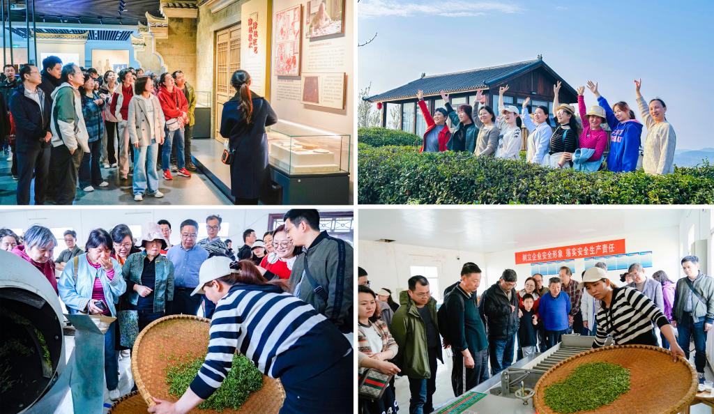 下午,大家前往孝昌县文化中心,参观了孝昌非遗文化馆、出土文物展和红色澴川革命纪念馆。在参观过程中,孟宗哭竹、邹岗旱船、孝昌大鼓等非遗文化传承历史深深吸引了每一个人,同时解说员的介绍中领悟革命先烈舍家为国、奋勇拼搏、为民牺牲的高尚品格,接受了革命传统和爱国主义教育;在湖北孝孟红观光茶园,大家参观了茶叶制作流程,包括杀青、初烘、揉捻、炒干等,漫山遍野的茶树绿意盎然,品茶之余,大家尽享田园风光的美好。