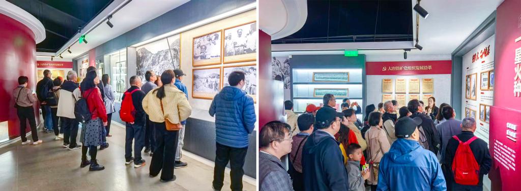 早上8点准时出发,一路欢声笑语。据文字史料记载,黄石大冶铁矿的历史最早可追溯到三国时期,有着 1700 多年历史,从古代、近代再到现代,大冶铁矿都在中国工业史留下浓墨重彩的一笔。在国家矿山公园,大家瞻仰了最高大的毛主席石雕像,参观了共产党人在矿山文化展览,为找寻采矿遗迹重走了“矿工之路”,此地为落差达444米的世界第一高陡坡,亚洲最大硬岩复垦基地石海变绿洲的人间奇迹。