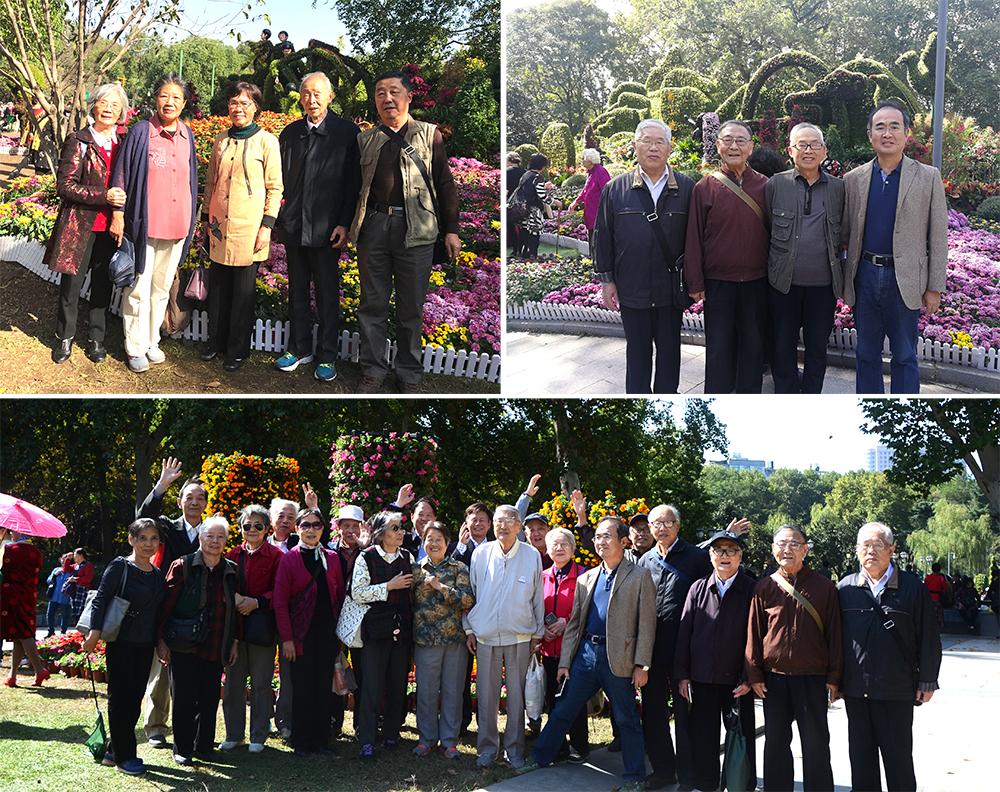 大家徜徉在花海中、三三俩俩、欢声笑语,合影拍照,记下他们的美好记忆,幸福洋溢在每位老同志的脸上。午餐后大家还去了久负盛名的汉口江滩,观看江滩上茂密的芦苇在秋风中摇曳生姿,感受滚滚长江水东流浩荡。
