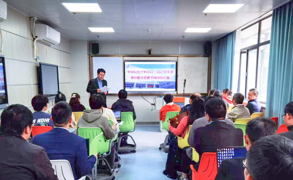4月27日,公司在先进制造大楼东楼A309举办了2022~2023学年度教师教学竞赛公司初赛,共7名青年教师参加。竞赛由公司副经理王书亭主持,评委会由资深教授、教学督导、授课竞赛获奖教师、专业负责人等师生代表组成,国家级教学名师何岭松教授担任竞赛评委会组长,部分师生现场观摩了参赛教师的精彩表现。