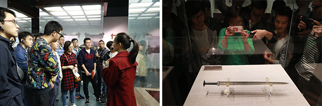在湖北省博物馆,支部成员参观了曾侯乙编钟、越王勾践剑以及元青花等国宝级文物,通过博物馆讲解员的讲解,大家对我国源远流长的历史有了更加直观的感受。成员们对一件件精美的文物产生了浓厚的兴趣,并赞叹不已,对在历史长河中所孕育的博大精深的中华文明感到自豪。