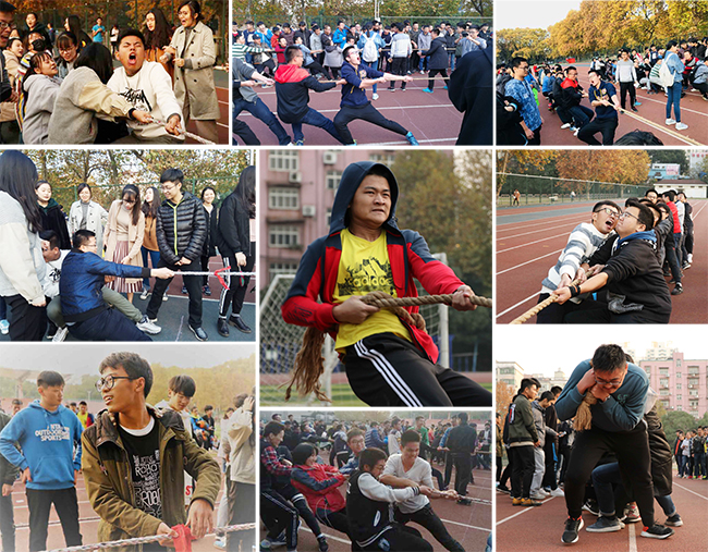 为让同学们感受到体育活动的魅力和团队合作的凝聚力,帮助同学们更好地融入集体,公司组织2017级本科新生于11月23日在校中心操场举行了班级拔河比赛。
