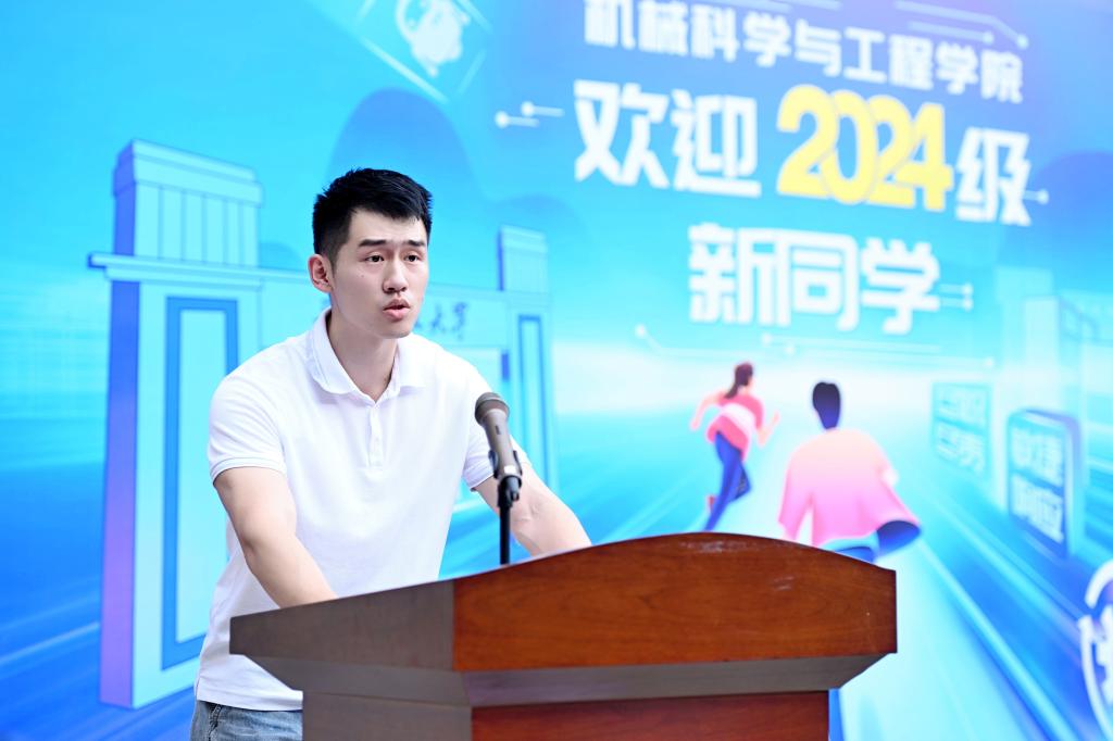 新生代表王浩博代表全体新生,表达能够成为与祖国制造业发展同频共振的“机械人”的荣幸,并立志要做“自强不息、团结协作、敏捷响应、尽职尽责”的新一代“机械人”。