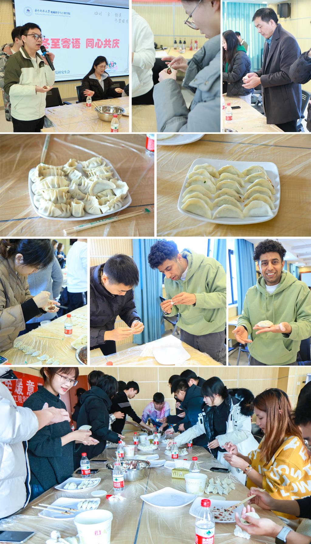 随后,辅导员王英杰展示了不同的饺子包法,并邀请大家积极挑战不同的包饺子方式。现场热闹温馨,一片欢声笑语。国际员工被中华传统文化深深吸引,在师生们的帮助下尝试包好了第一个饺子。煮好的饺子热气腾腾,大家围坐在一起品尝“劳动的果实”,感受冬日温暖。