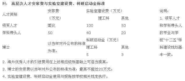 正式引进的高层次人才出具学历学位证、人事档案并与公司签订聘用合同后,以借支的方式一次性领取安家费,服务期满后冲账(也就是说,在服务器未满的情况下,就不能冲账)。实验室建设费、科研启动金以科研项目等形式划拨,首期划拨60%的经费,其余部分实行年度考核合格后划拨。引进高层次人才安家费,实验室建设费或科研启动金标准见附件。