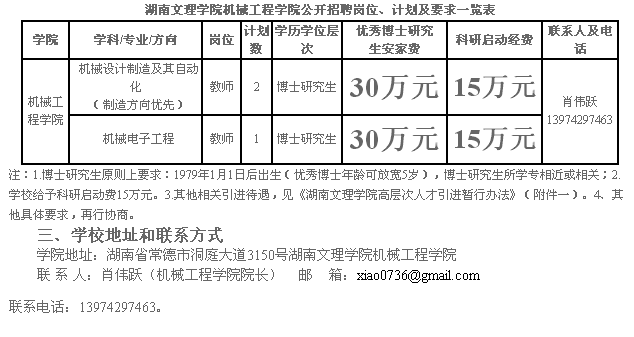 湖南文理公司机械工程公司2014年教师引进