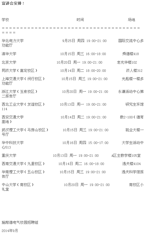 现在,2015年施耐德电气(中国)校园招聘于9月22日正式启动!同学们可通过校园招聘官网进行在线申请:www.SchneiderCampus.com