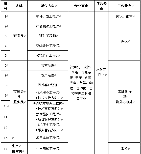 请进入官方网站校园招聘页面或烽火通信校园招聘微信号查看各职位说明。