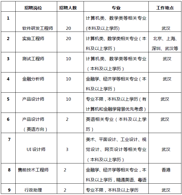 招聘职位如下: