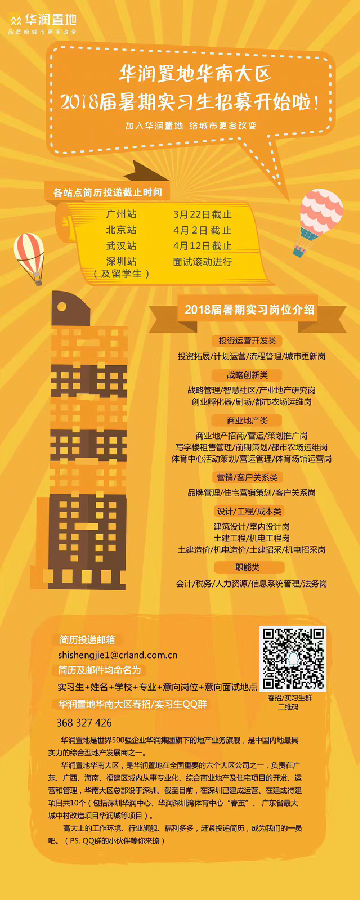 华润置地华南大区春招/实习生QQ群:397501826