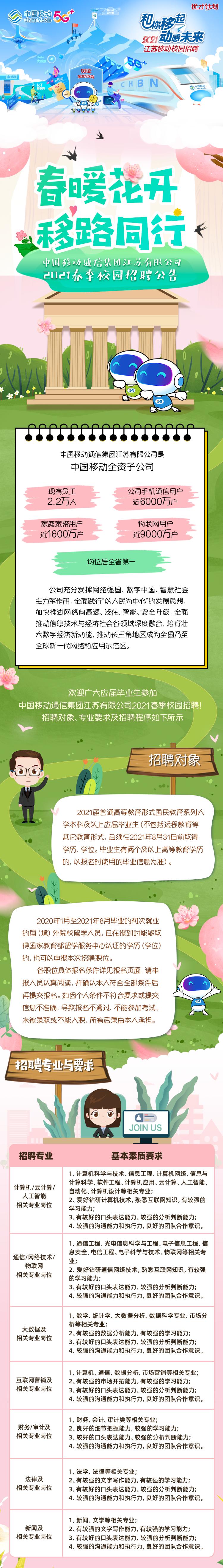 中国移动通信集团江苏有限公司2021春季校园招聘公告