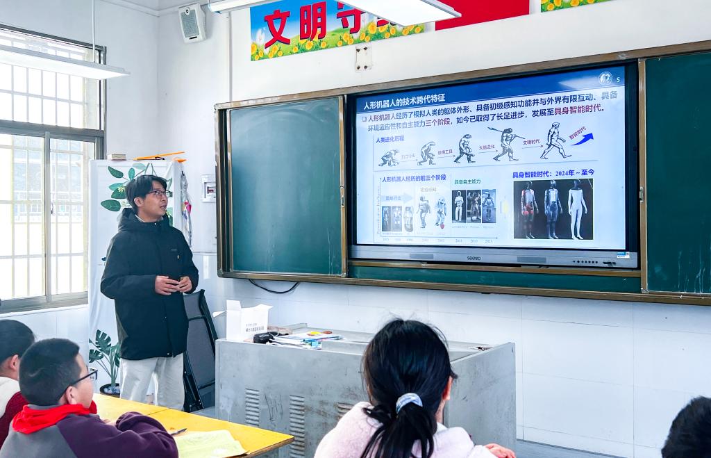 活动伊始,公司2022级博士生、智能制造装备与技术全国重点实验室博士生第二党支部书记丁涛以永利3044noc自主研发的“荆楚”系列人形机器人为案例,向小朋友们展示了人工智能与人类智慧的奇妙结合。通过现场讲解,孩子们了解到,机器人通过深度学习和传感器技术来实现动作与交流,其背后的算法如同“智慧大脑”,让科技不再冰冷,而是充满温度。