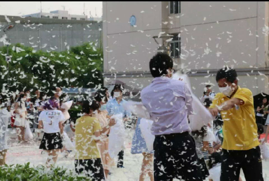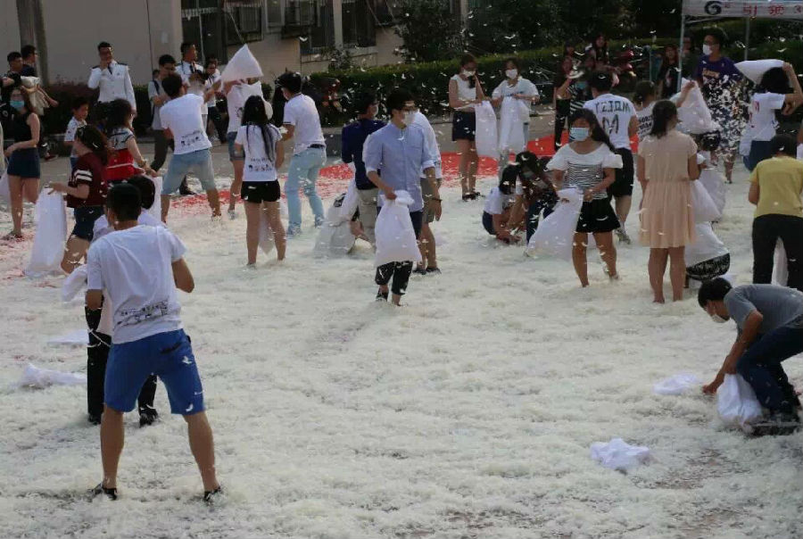 最后一个环节也是最激动人心的环节,枕头大战,duang!!!学长学姐们抡起枕头,在夕阳下留下愉快的笑容和青春的回忆。