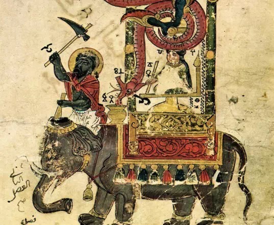 阿拉伯伊斯兰学者,发明家,机械工程师,工匠,艺术家,数学家和天文学家加扎利(1136-1206)设计的大象钟: