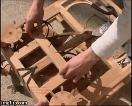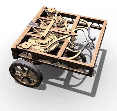 下图是达芬奇设计的小车,通过上发条可以自动行驶。