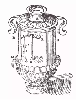 世界上第一台自动贩卖机:在顶端投币,机器就会给出一定分量的圣水。