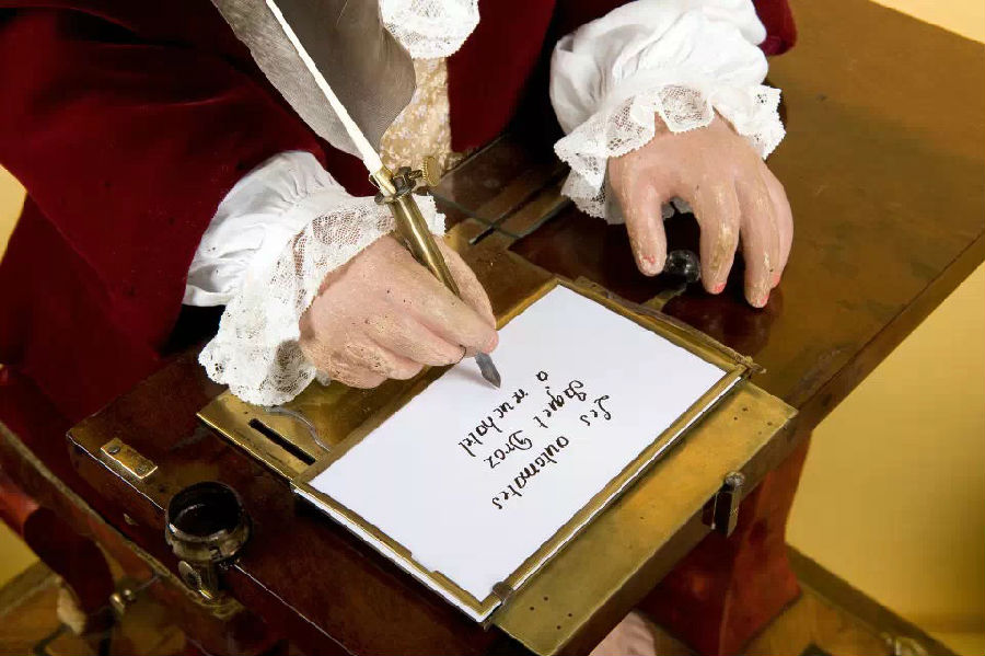 瑞士钟表匠皮埃尔•雅克德罗Pierre Jaquet-Droz(1721-1790)设计制造了机械人偶,以帮助销售自己的手表。