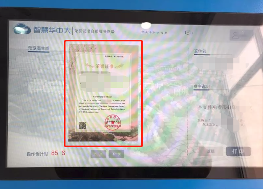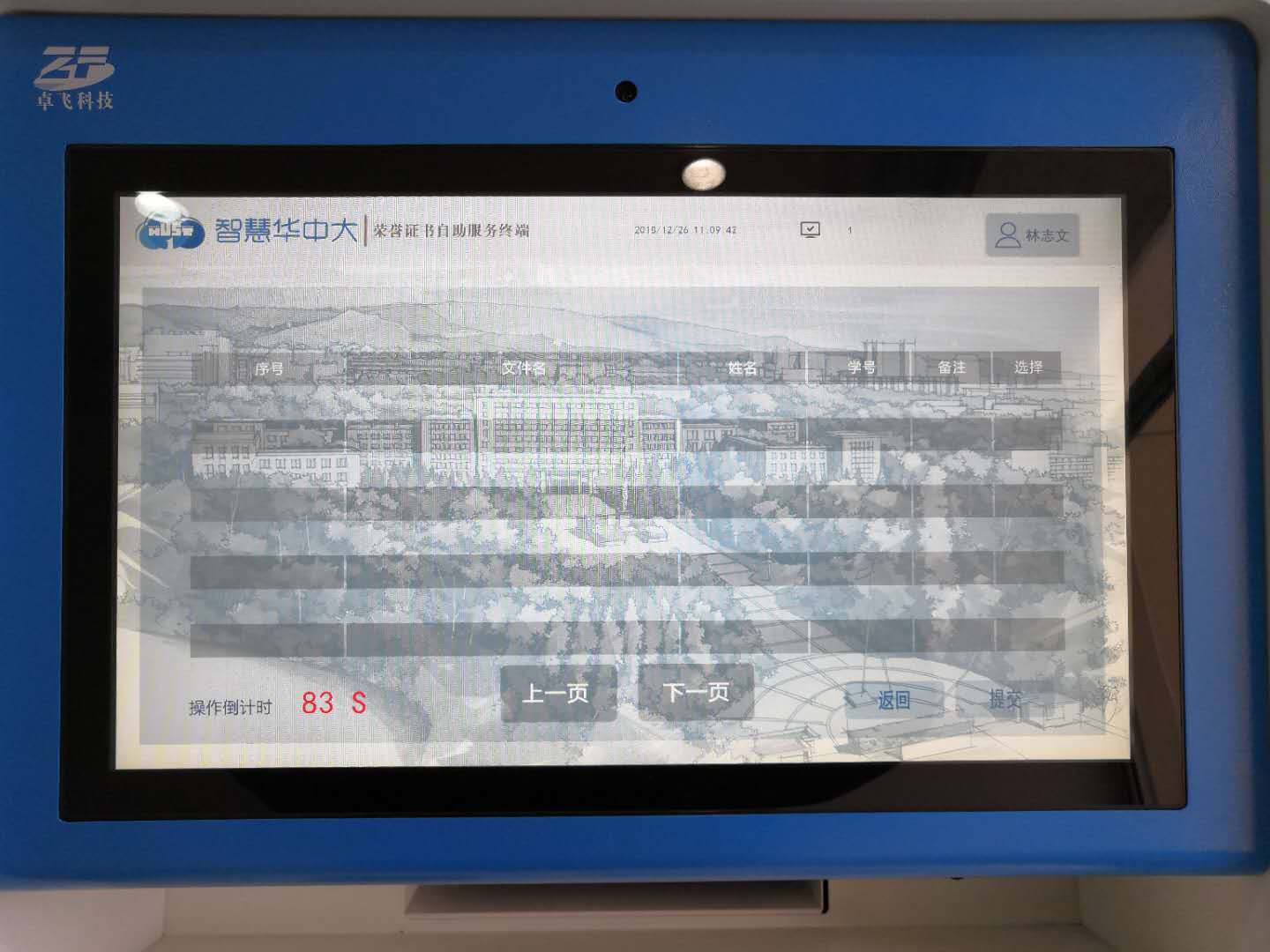 点击主界面“荣誉证书”按钮即可登陆,目前有两种登录方式:①刷校园卡,②微信扫码(微信需绑定“华中大微校园”)。