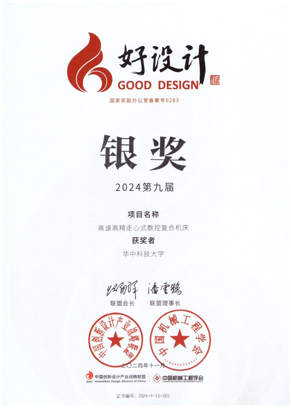 “好设计奖”是面向制造业创新设计的综合性科技奖项,并在国家科学技术奖励工作办公室备案登记(奖励编号0283)。好设计奖由中国创新设计产业战略联盟和中国工程院科技知识中心共同主办,中国机械工程学会承办,自2015年起已连续举办九届,评选了一大批中国自主创新设计的项目,为推动中国制造高质量发展发挥了积极作用。2024第九届好设计奖由全国七大区及十五家合作伙伴组织申报,终评会由40余评委组成,其中院士达10余人。最终全国共评出金奖10项、银奖20项,提名10项。
