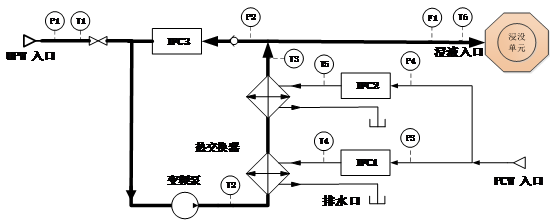 浸液温控系统和浸没净化与控制系统共同构成浸没控制系统,其结构简图如图8所示。浸液温控系统设计为嵌入式和分布式,没有独立的机柜而是分布在PWS(纯水供给系统)和TCS(传输控制系统)中,同时在浸没单元的的入口设置了温度传感器。采用PFA材质的换热器,采用控制流量的方式来控制温度,避免了对处理后纯水的污染,实现了控制的解耦。通过并联两个伺服流量控制阀(IFC),增大冷却水流量的控制范围,采用两个伺服流量阀平稳切换算法实现高精度流量控制。
