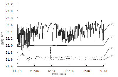 温度控制系统采用超纯水为媒介,流量恒定、控制温度,再通过热交换方式控制投影物镜的温度,温度控制系统只对投影物镜单一点的温度进行精度控制,投影物镜的温度场控制主要是通过换热结构方式实现。除投影物镜外,投影光刻机内部空气温度需要控制在22±0.1℃,还要冷却工件台、掩模台、硅片传输等系统却电机、控制盒等发热,通过每个温度控制对象采用一个温度控制系统,导致温度控制系统异常庞大,该温度控制系统能对多个温度对象同时实施控制。