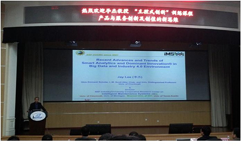 李杰教授结合自己在智能维护系统研究中心(Intelligent Maintenance Systems)的研究成果,通过大量列举实例的方式,围绕“核心科技”与“服务”间的关系、科研成果如何向市场产品转化等话题开展了讲座。
