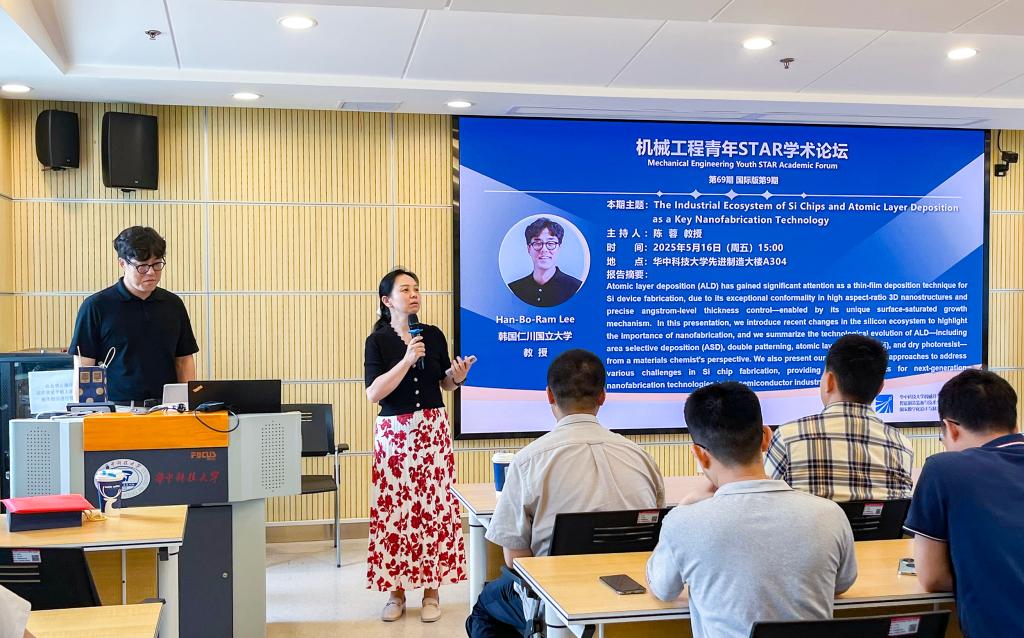 Lee教授参加了公司机械工程青年STAR学术论坛,并做了题为“The Industrial Ecosystem of Si Chips and Atomic Layer Deposition as a Key Nanofabrication Technology”的学术报告。他着重介绍了区域选择性沉积、原子层蚀刻等前沿技术在解决硅芯片制造瓶颈问题上的应用,深刻阐述了纳米制造技术在半导体行业发展中的重要地位。