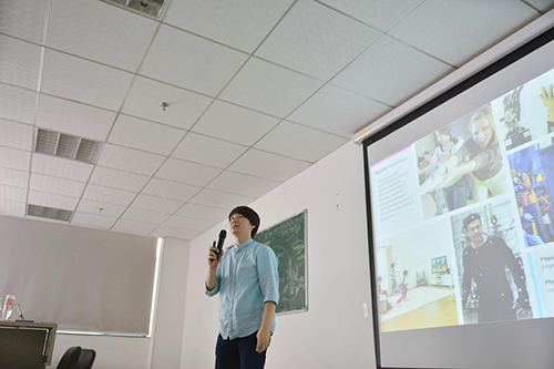 当天下午,在两个半小时的专题讲座中,T J KIM副教授结合个人经历和实际设计项目经验,引导员工如何从过去的经验中探寻未来的用户体验设计。他从策略性设计的程序与方法讲起,分析先进科技和设计之间的关系,指出要分析人潜在的愿望去寻找用户体验设计的方向,先进科技只有应用到设计中才有意义。接着,他把未来的用户体验分成生理化体验、数字化体验、信息化体验、增强现实体验四个方面,并结合可穿戴设备、智能家居、增强现实眼镜等产品设计实例进行了讲解。在讲座最后,T J KIM副教授与同学们展开了互动,详细解答了同学们所提出的问题。