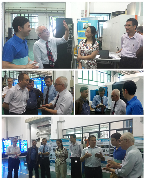 在公司的装备制造实验室,肖峻峰老师向新加坡国立大学的来宾介绍了数控中心自主研发的华中8型数控系统,及其在研的云服务平台,介绍了发动机磨床、双面双床的原理及性能参数;赵欢老师介绍了机器人智能制造,机器人组合磨抛平台的示范应用;王春明老师讲解了高质高效的激光焊接、切割加工工艺和实验装置。