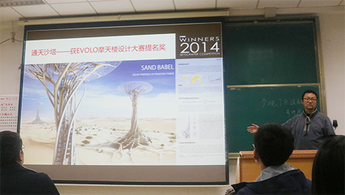 邱松教授首先指出,世界一流大学的设计教育,应该是为未来设计培养领导者。随后,他介绍了设计形态学的概念、方法论、理论体系和由他提出的“第三自然”概念,并介绍了他领导的清华大学学术团队在相关领域的探索和成果。师生们就设计形态学和清华大学的团队建设与员工培养模式与邱松教授进行了互动交流,讲座从7点一直持续到10点,反响十分热烈。