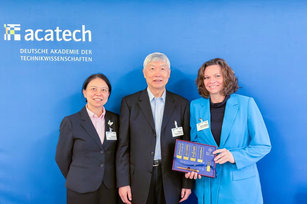 公司李培根院士(中)、陈蓉副经理(左一)向德国工程院办公室国际关系负责人Karen Wagner女士(右)赠送公司纪念品