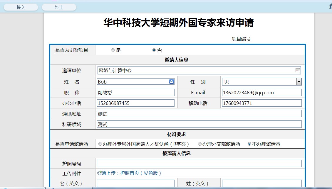 11、国际交流处专家管理员审核通过后,院系外事专办员与申请人打印表单后则次流程结束,如下图: