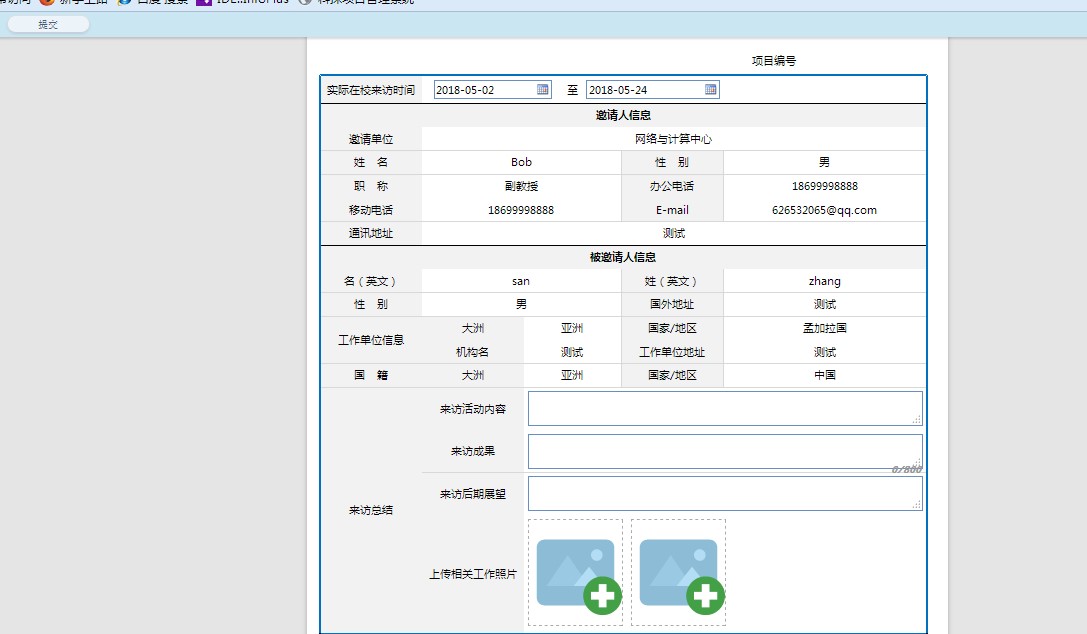 7、国际交流处专家管理员审核后进入申请人提交总结环节,申请人根据情况填写总结表,总结页面如下图: